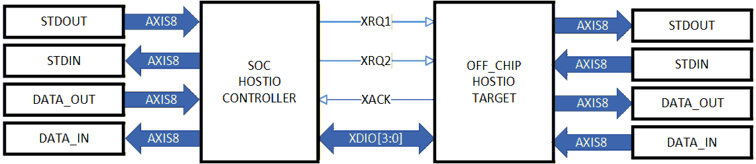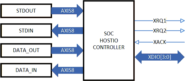 To improve the design reuse in SoC designs and FPGA implementations or prototypes all the data channels are implemented as 8-bit AXI-stream interfaces. These provide hardware-handshaking transfers at the byte level.